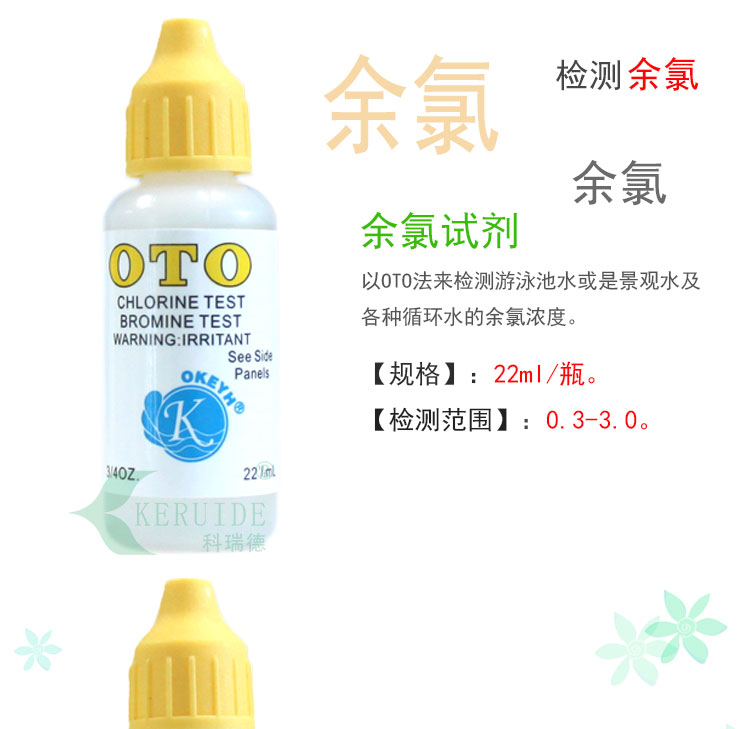 余氯試劑,是二合一比色計的配套余氯測試劑,以O(shè)TO法來檢測游泳池水或是景觀水及各種循環(huán)水的余氯濃度,其顯示的顏色與二合一比色計所配套的比色皿上色卡相對應(yīng)。