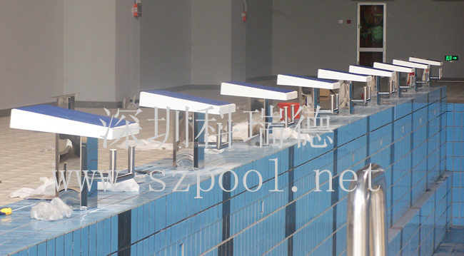 以下是我公司游泳池出發(fā)臺在深圳福田體育公園室內(nèi)游泳館安裝過程及實際效果圖: