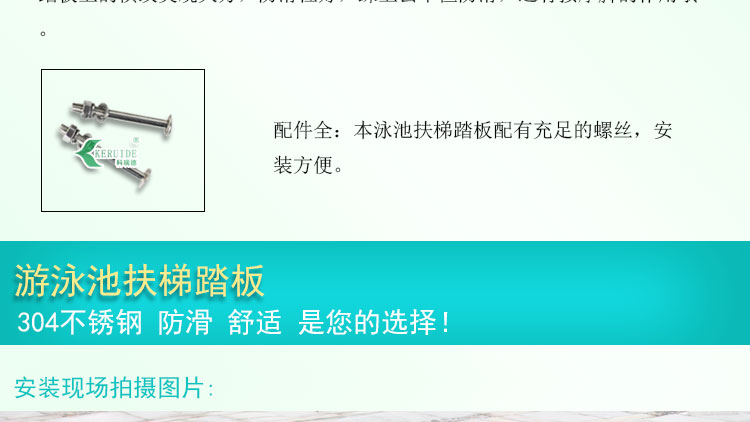 本泳池扶梯踏板配有充足的螺絲,安裝方便。