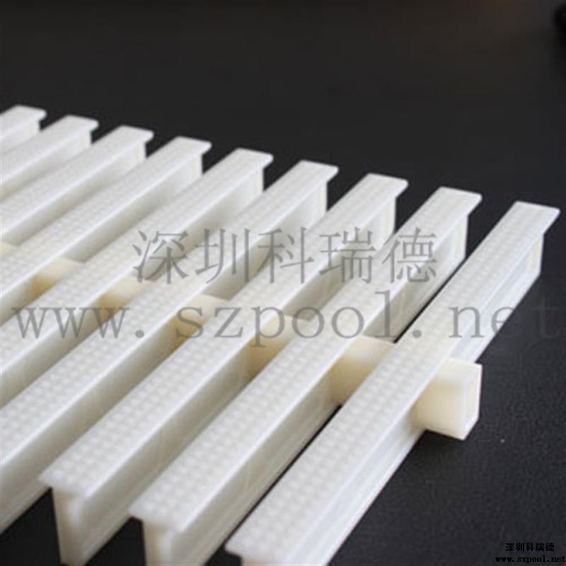 游泳池格柵又,名格柵,防滑渠面格柵或者是游泳池排水溝格柵。游泳池格柵是作為游泳池四周排水溝的塑料蓋板。本產(chǎn)品具有:防滑、耐腐蝕,抗老化等特性,組分容易,安裝簡(jiǎn)單,它的梳形格柵接口不會(huì)堵塞,令清潔工作輕松方便,并可根據(jù)泳池的各種形狀隨意隨意拼接而無(wú)須裁剪。