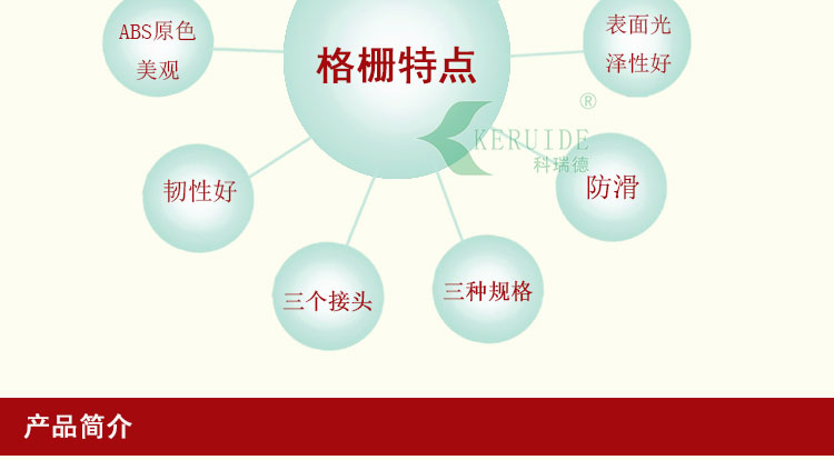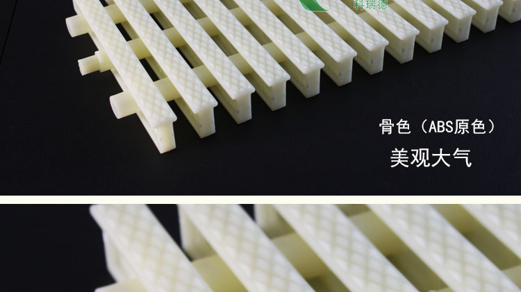其二:耐腐蝕性以及防老化,韌性,本產(chǎn)品采用的是ABS材質(zhì),ABS塑料,具有很好的耐腐蝕性與韌性,質(zhì)量可靠,使用壽命長(zhǎng)久。還具有格柵尺寸穩(wěn)定、表面光澤性好等特點(diǎn)。