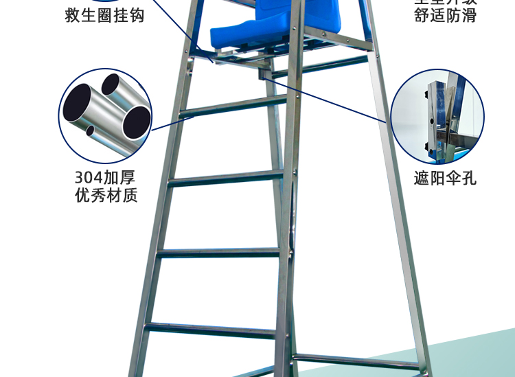 救生椅是游泳救生員從高處觀察泳區(qū)情況的專用座椅,是安全輔助措施,屬于游泳池救生設(shè)施器材。