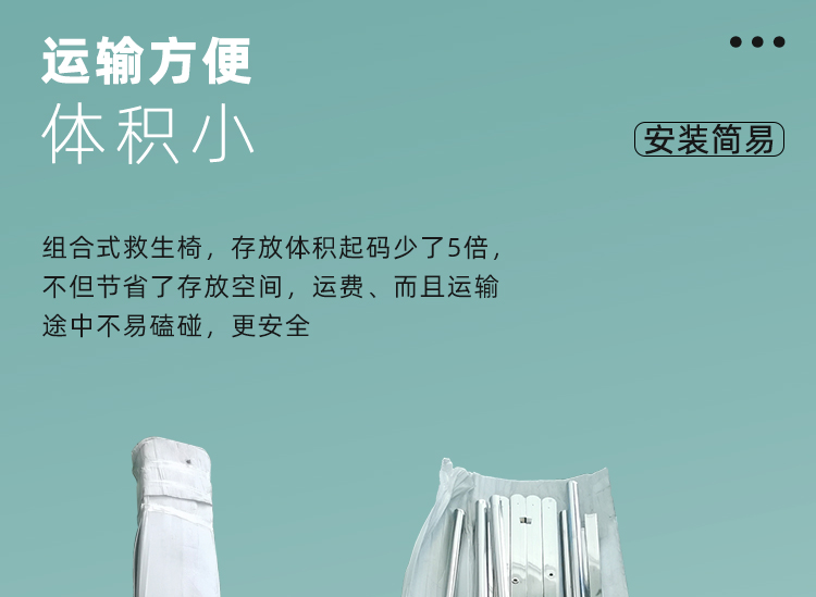 而我們?cè)O(shè)計(jì)的“wepools組裝組合式救生椅”可拆卸,存放體積減少了5倍(從原來的1.6立方減少到0.32立方),外包裝有7層紙箱包裝,并且不銹鋼還有包裝膜保護(hù)。不但節(jié)省存放空間,節(jié)約運(yùn)費(fèi),而且運(yùn)輸安全。