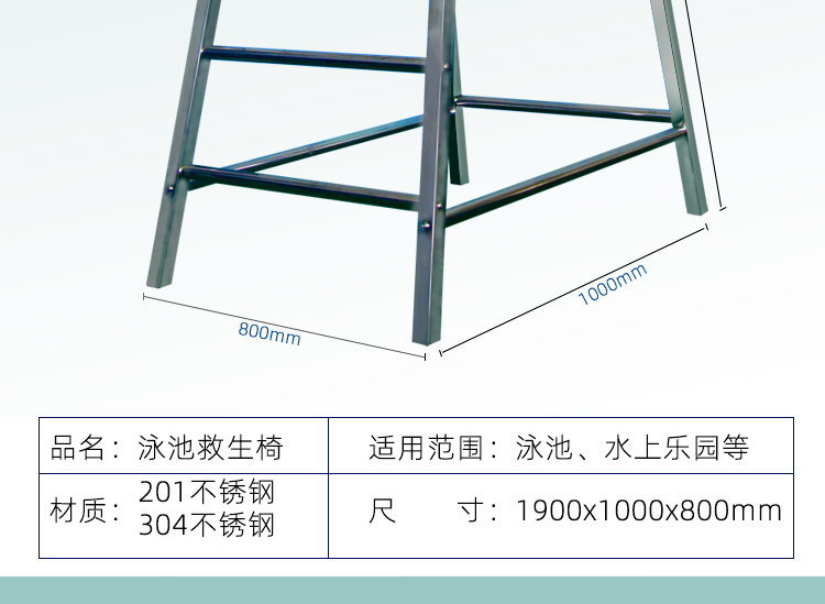 一般游泳池使用的救生椅高度為1.9米,海灘等面積較大的泳區(qū)使用的為2.5米。救生椅有標(biāo)準(zhǔn)型和豪華型兩種,標(biāo)準(zhǔn)型采用的材料是202不銹鋼,豪華型采用的材料是304不銹鋼??钍揭粯樱煌谟诓捎貌馁|(zhì)不同。