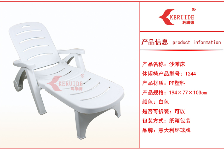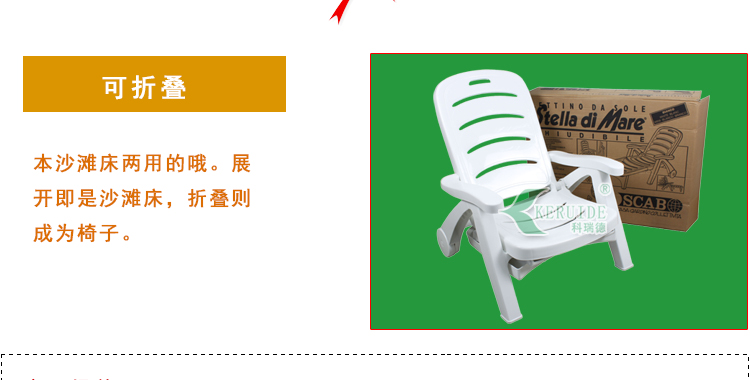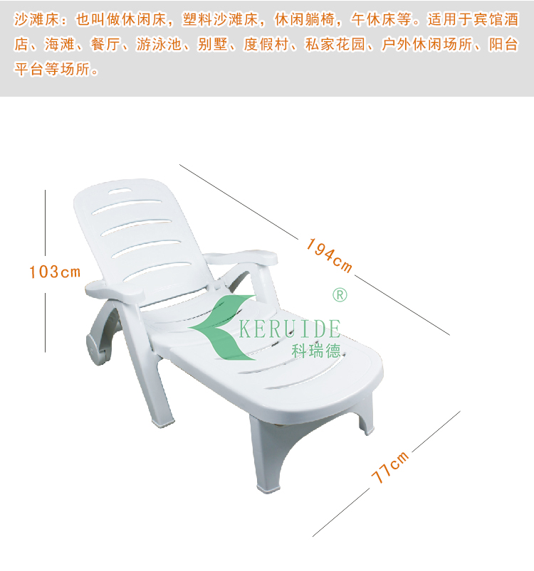 沙灘床,也叫做休閑床,塑料沙灘床,休閑躺椅,午休床等。適用于賓館酒店、海灘、餐廳、游泳池、別墅、度假村、私家花園、戶外休閑場所、陽臺(tái)平臺(tái)等場所。本產(chǎn)品為意大利進(jìn)口環(huán)球牌沙灘床,具有質(zhì)量可靠,耐老化,造型美觀等優(yōu)點(diǎn)。