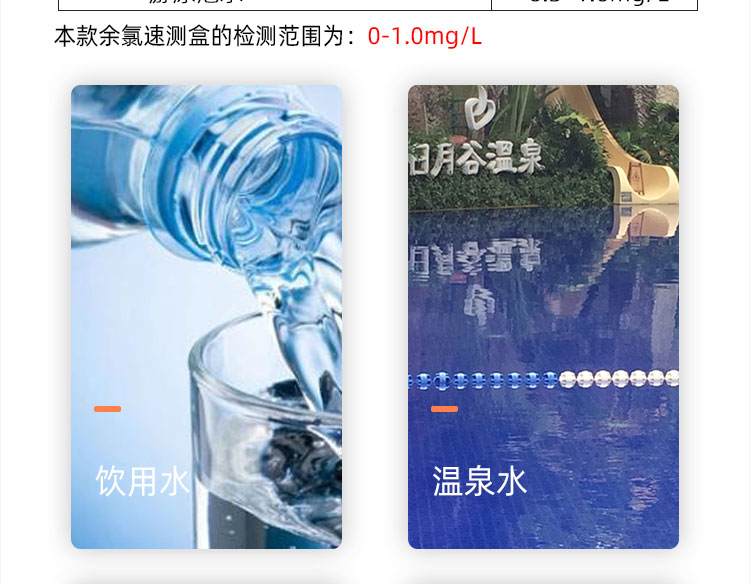 廣泛應(yīng)用于各類游泳池水質(zhì)檢測。DPD余氯快速測定盒已被各類游泳池,桑拿,溫泉等用于檢測水中余氯濃度使用。
