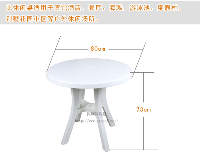 沙灘桌,一般叫法為沙灘桌,也叫戶外家私,塑料桌,休閑桌椅。用于游泳池場所及海灘等游泳場所或休閑會所的休閑桌椅,本產(chǎn)品是一款組裝型的桌子,方便移動,搬運,及物流。屬于游泳池休閑用品的一種。