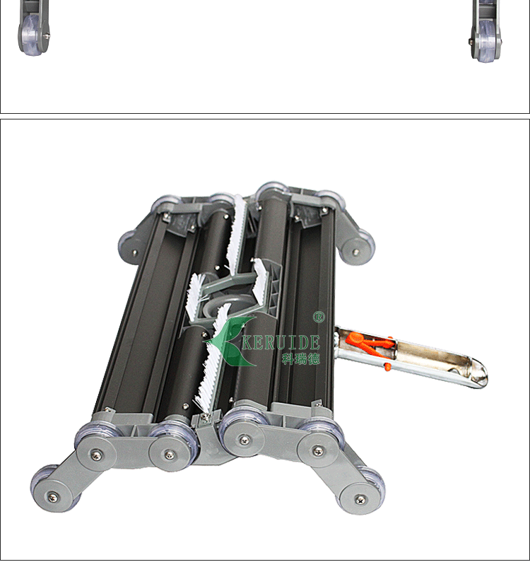2,特殊設(shè)計(jì)的輪子:外面的四個(gè)輪子往上翹約45°,可以從池底爬行到池壁,且利于吸池壁與池底連接處的的臟物。