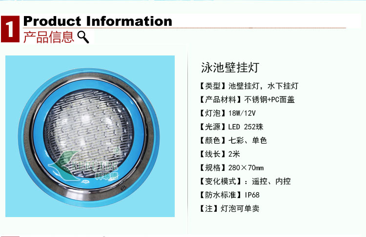 產品名稱:池壁掛燈,水下掛燈