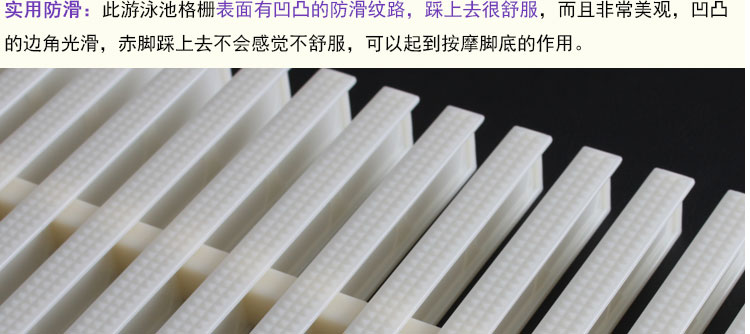 游泳池格柵,作為游泳池四周排水溝的塑料蓋板,作用有: