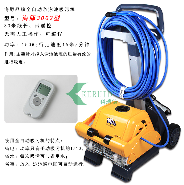 美國海豚自動吸污機(jī)3002型是游泳池全自動吸污機(jī)的一種,配30米線,帶遙控,可編程。