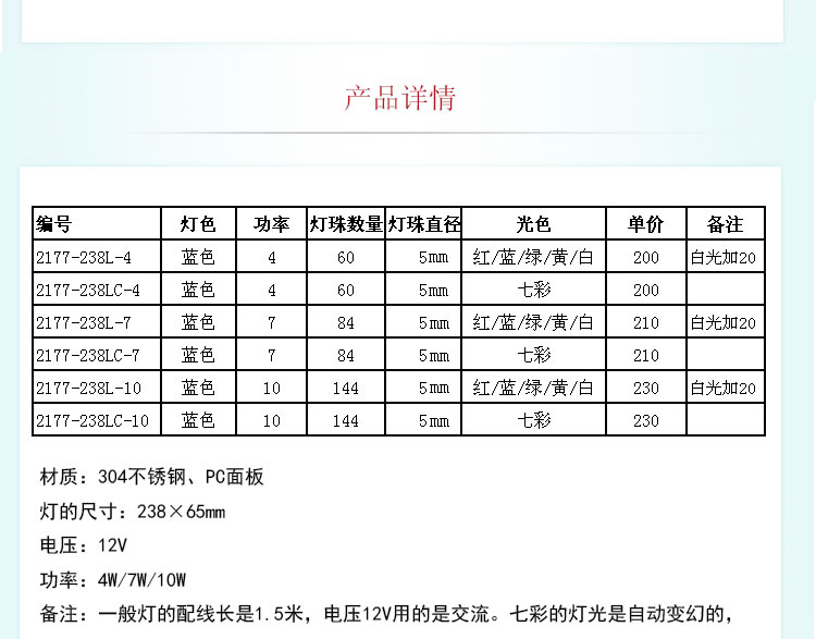 顏色:七彩、單色(紅/藍(lán)/綠/黃/白)