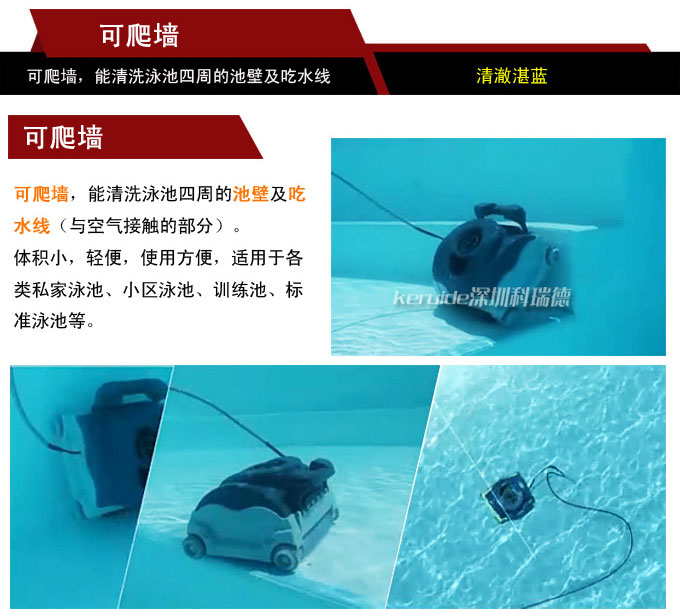 3,可爬墻,爬臺(tái)階,清潔泳池每一處,無(wú)死角吸污。