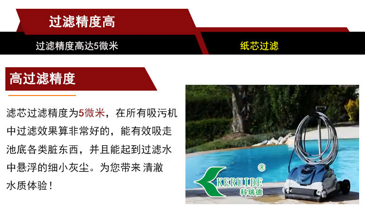 1,過(guò)濾精度高達(dá)5微米,能有效吸走池底各類(lèi)臟東西,并且能起到過(guò)濾水中懸浮的細(xì)小灰塵。