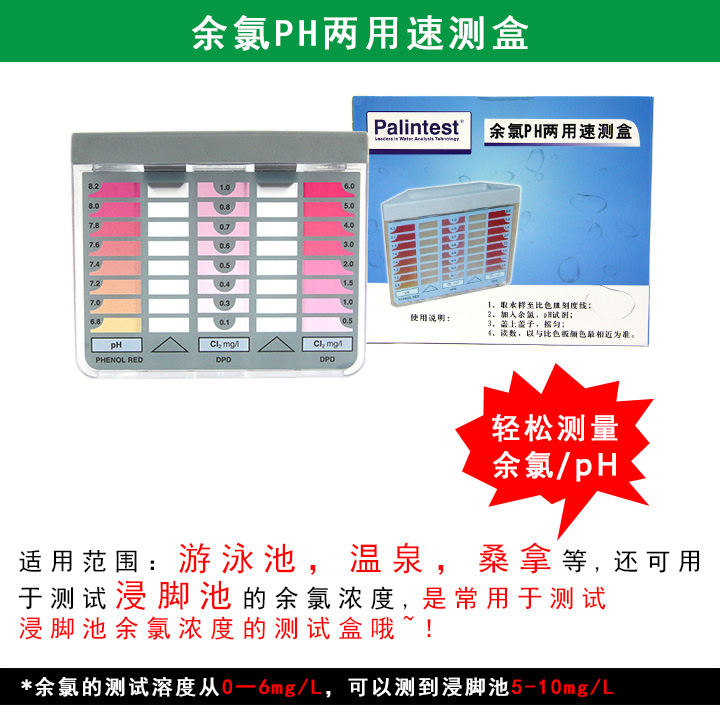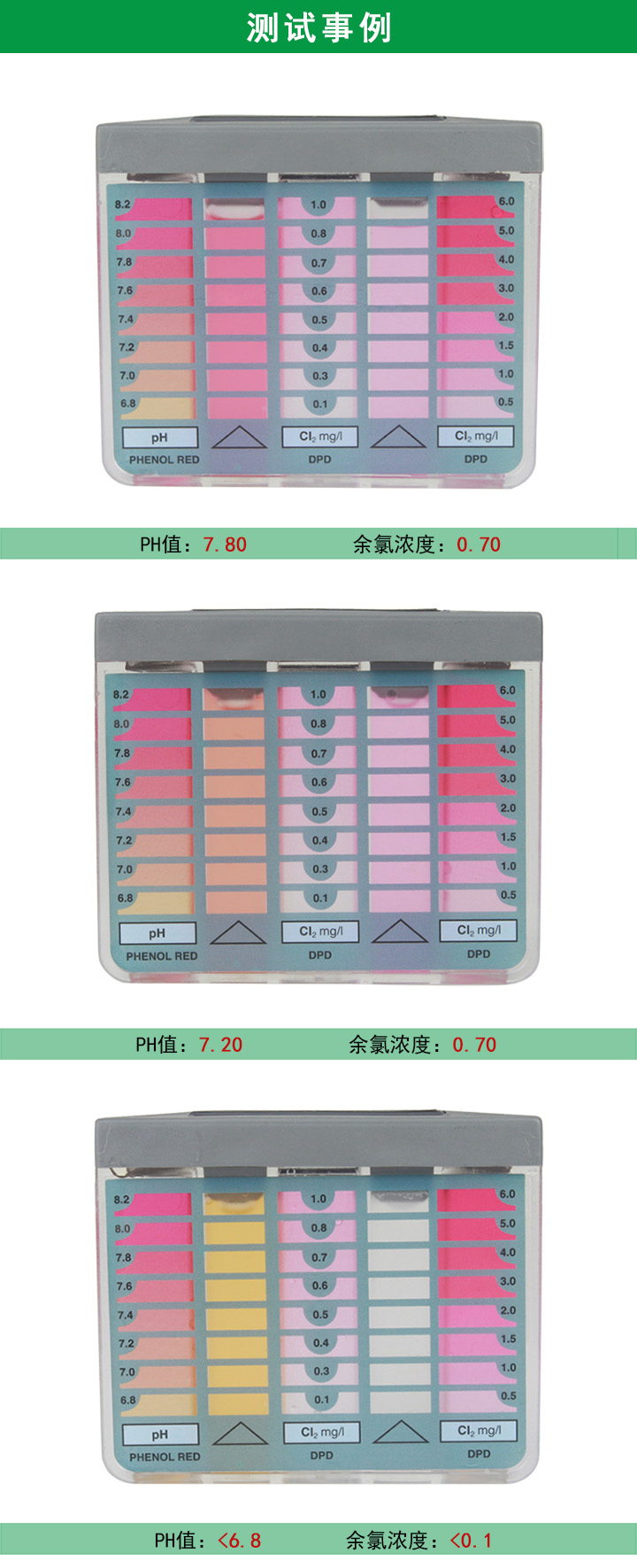 【檢測范圍】:余氯范圍:0.1-6.0mg/L?? pH范圍:6.8-8.2