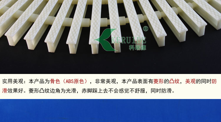 【實用美觀】:本產(chǎn)品為骨色(ABS原色),非常美觀,本產(chǎn)品表面有菱形的凸紋,美觀的同時防滑效果非常好。菱形凸紋邊角為光滑,赤腳踩上去不會感覺不舒服,同時防滑。???