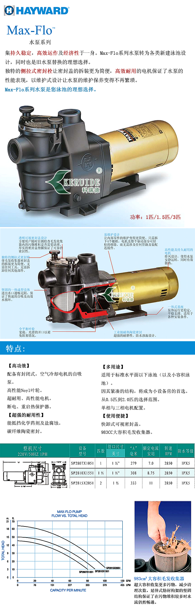 Max-Flo喜活吸污泵集持久穩(wěn)定,高效運作及經(jīng)濟(jì)性于一身,又稱游泳池循環(huán)泵。Max-Flo系列水泵轉(zhuǎn)為各類新建泳池設(shè)計,同時也是舊水泵替換的理想選擇。