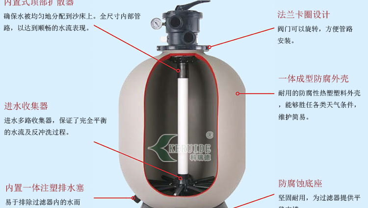 確保水被均勻地分配到沙床上。全尺寸內(nèi)部管路,以達(dá)到順暢的水流表現(xiàn)。
