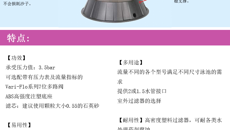 流量不同的各個(gè)型號(hào)滿足不同尺寸泳池的需求