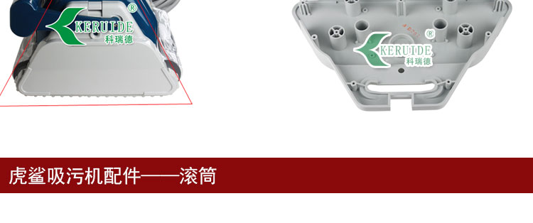 滾筒:虎鯊爬墻主要是依賴于滾筒,滾筒可爬墻,所以虎鯊吸污機可爬墻,能清洗泳池四周的池壁及吃水線(與空氣接觸的部分)。