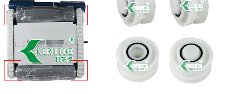 膠墊:這種膠墊是彩鯊吸污機原裝配件,是RC-4彩鯊不爬墻款的配件。不過可以通用于彩鯊和虎鯊?;Ⅴ徫蹤C本身是可爬墻的,其前后兩個輪都滾筒,不過也可以換成這種膠墊,膠墊不可爬墻。