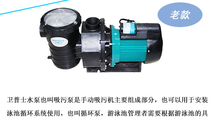 游泳池在使用沉淀劑后7~8小時,我們需要對游泳池進(jìn)行吸污,并且只能用手動吸污機(jī)。本款吸污泵是游泳池吸污機(jī)的主要部件,泳池吸污機(jī)的配件還有吸污盤,吸污管浮球,不銹鋼小推車,帶電纜線及管路等。