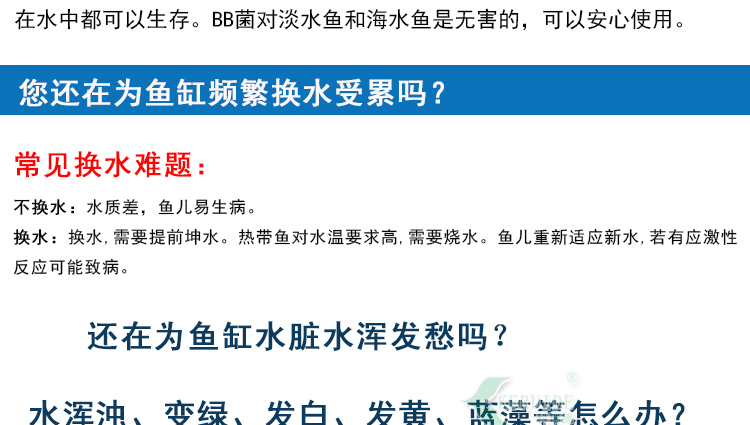 3,BB菌對(duì)淡水魚和海水魚是環(huán)保的,都可以安心使用。