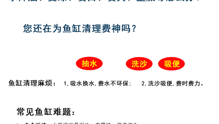 1)本產(chǎn)品不受魚池清潔程度的影響,但如果在2-3周之間沒有任何明顯效果時(shí),請(qǐng)將魚池清洗一遍。