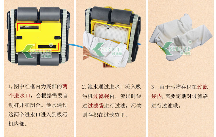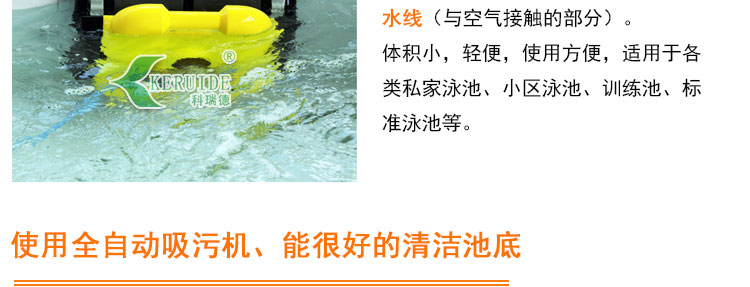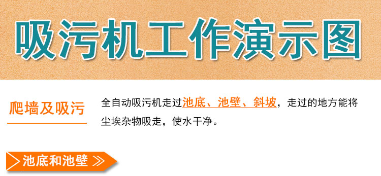 吸污徹底:可爬墻,能清洗泳池四周的池壁及吃水線(與空氣接觸的部分)。