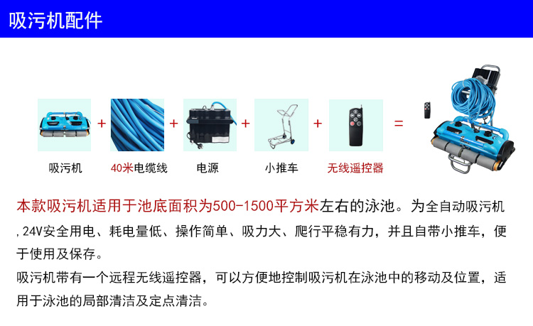 電纜線長(zhǎng)達(dá)40米,適用于各種類型大中型泳池,使用簡(jiǎn)單。