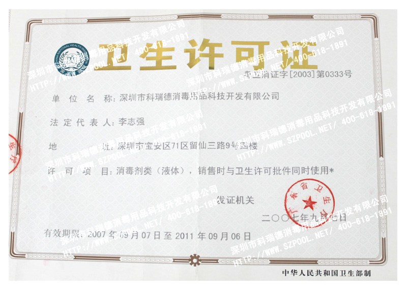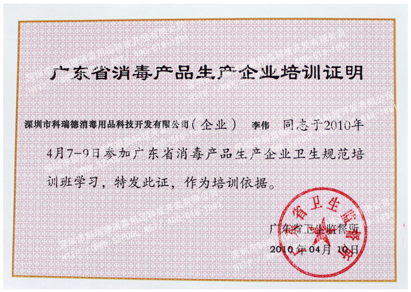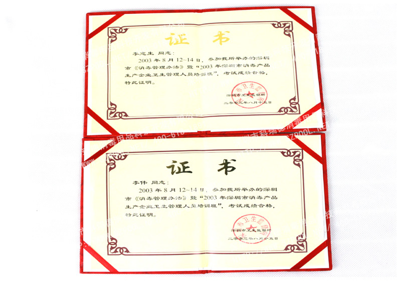 消毒產(chǎn)品衛(wèi)生管理培訓(xùn)證書 |