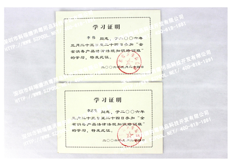 消毒產(chǎn)品法律知識學(xué)習(xí)證明 |