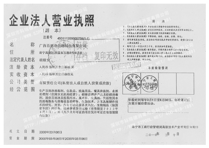百消凈企業(yè)法人營業(yè)執(zhí)照 |