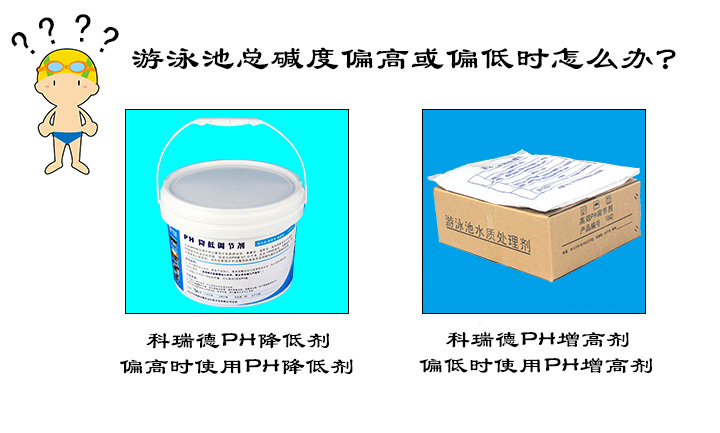 那當(dāng)游泳池總堿度偏高或偏低時(shí)該怎么辦呢?當(dāng)總堿度偏低時(shí),可使用PH增高劑來(lái)調(diào)節(jié),即我們常用的碳酸鈉ph增高劑;當(dāng)總堿度偏高時(shí),可使用PH降低劑來(lái)進(jìn)行調(diào)節(jié),即我們常用的科瑞德PH降低劑。需要注意的是,在加入補(bǔ)充藥劑過(guò)程中要在局部形成比較高的濃度,這樣才能降低或者增加總堿度,所以需要把pH降低劑或者碳酸鈉一次性加入水中,不要少量多次添加,要一次性投放。(PH值增高或降低的調(diào)節(jié)機(jī)詳情可進(jìn)入http://www.www.gaodsc.com/products/c12.html)
