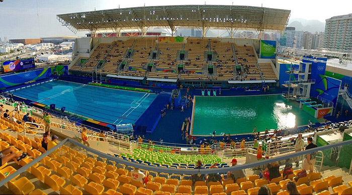 這一屆的里約奧運(yùn)會(huì)可維娛樂(lè)風(fēng)十足啊,吸足了觀眾的眼球,先是各國(guó)運(yùn)動(dòng)員被搶?zhuān)尨蠹易诩抑卸既滩蛔檫\(yùn)動(dòng)員的安全捏一把汗,再是孫楊游泳排第二被霍頓損“嗑藥”,引發(fā)中國(guó)網(wǎng)友對(duì)他的各種炮轟,賺足了頭條,這邊新聞還熱度沒(méi)過(guò),中國(guó)奧運(yùn)游泳女將傅園慧的一句“洪荒之力”表情包立馬又風(fēng)靡了全球,以上這些新聞都是跟人物事跡有關(guān)的,誰(shuí)知道沒(méi)多久一個(gè)眼尖的網(wǎng)友發(fā)現(xiàn)奧運(yùn)游泳池的池水是居然是綠色的,運(yùn)動(dòng)員跳進(jìn)去以后,只見(jiàn)一框綠油油的水,人卻不見(jiàn)了,這一發(fā)現(xiàn),立馬就把這個(gè)游泳池給推到了風(fēng)頭浪尖,讓這個(gè)奧運(yùn)游泳池過(guò)了一把頭條引。