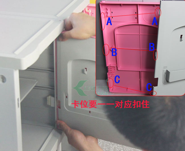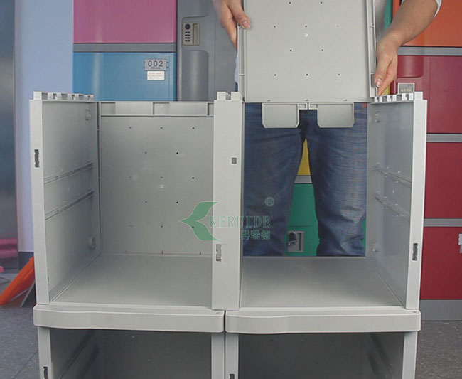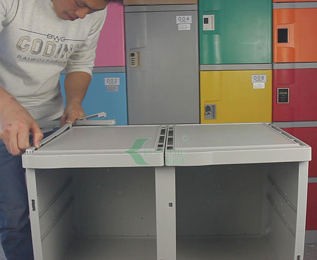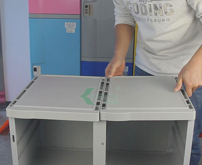 第三步:安裝塑料更衣柜的上下板,對(duì)應(yīng)卡槽直接插入。