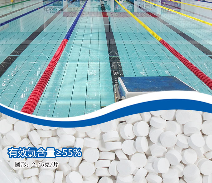 復效凈泳池消毒片溶解快、無殘渣,PH接近中性,有效氯含量約55%左右,人工灑入泳池中約15分鐘能溶解,因此也能與三氯泡騰片(效氯含量45-50%)一樣,直接人工灑入池中使用。