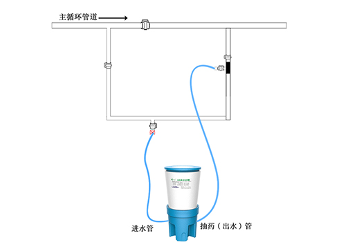 這種泳池投藥設(shè)備安裝非常簡(jiǎn)單,只需要在主循環(huán)管道中分出加藥旁路,在旁路中安裝我們提供的水射流器及相應(yīng)的開(kāi)關(guān)就完成了。(如下圖為實(shí)際安裝案例)