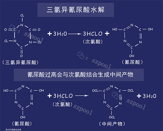 ? ?氰尿酸 是消毒劑二氯異氰尿酸和三氯異氰尿酸的消毒副產(chǎn)物,能使水中的次氯酸濃度維持穩(wěn)定,從而產(chǎn)生了消毒作用持久的效果。但由于氰尿酸不易分解和去除,因此很容易在水中聚集,當(dāng)濃度超過50mg/L后會嚴(yán)重抑制次氯酸的消毒效果,使細(xì)菌增加,引起池水渾濁。