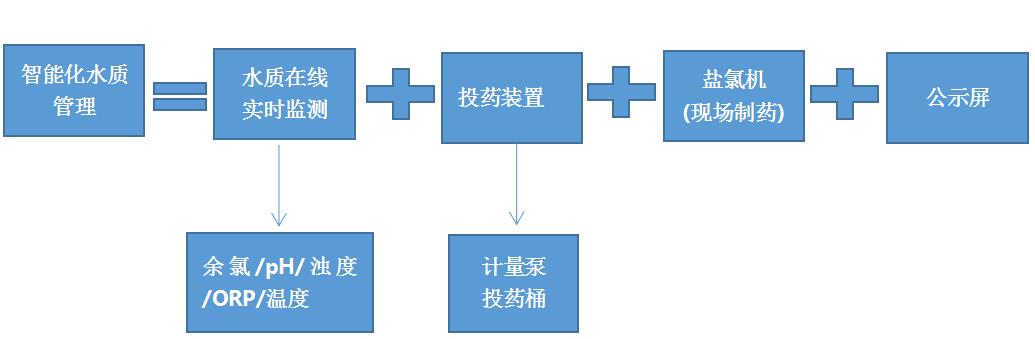 而智能化水質(zhì)管理系統(tǒng)由在線監(jiān)測(cè)儀、計(jì)量泵和鹽氯機(jī)以及實(shí)時(shí)水質(zhì)公示屏組成!