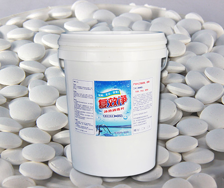第三:新型的二水二氯異氰尿酸鈉消毒片,品牌名稱為復(fù)效凈泳池消毒片,如下圖: