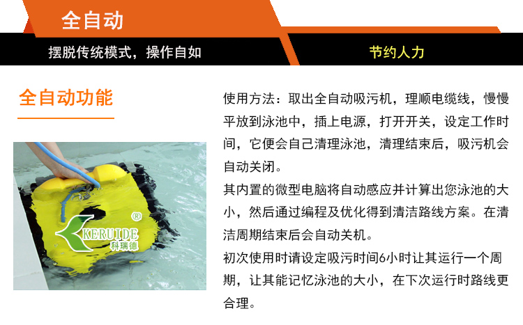 噴水并非為了好看,SJ吸污機吸污時池水從機器底部進(jìn)入,經(jīng)過過濾袋,過濾后的干凈的水會從機器頂部噴出,流回泳池。水流大,水柱高說明其吸力大,吸污強勁。而且過濾后的水依然流回泳池中,節(jié)約水資源。