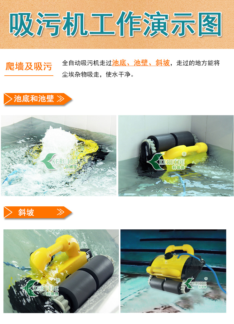 下面通過幾張圖來看SJ吸污機是如何清洗泳池的: