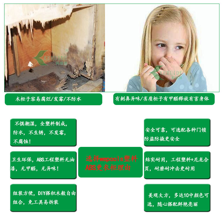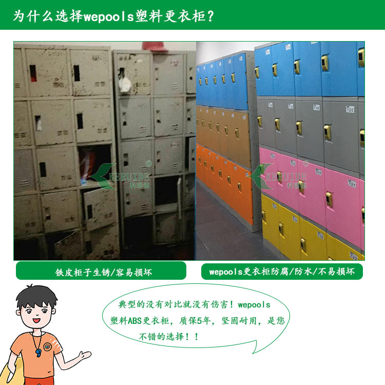 Wepools塑料更衣柜以環(huán)保性、安全性、耐用性為向?qū)?,以?yōu)質(zhì)、美觀、新穎為特點,采用ABS健康樹脂材料,色彩純正滿足不同行業(yè)需求!